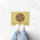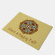 Art Nouveau arches surround the stained glass inspired layers of this mandala, featuring birch trees, chrysanthemums, harvest corn, apples, and autumn leaves in warm colours to fully embody the feelings of closure that come with fall. Customise the text on this doormat with your own preferred greeting or remove it entirely to make a unique decoration for your entryway.