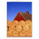 On a beautiful fall day with the moon rising in the sky, cutting and rolling hay provides food for the animals during the cold months ahead. This is just one of the many things a farmer does to prepare for winter. This is a beautiful photograph showcasing the bounty of fall. An old, but still working barn in the background, will undoubtedly store the “bounty” until needed.