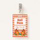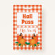 A hall pass badge with a fall theme . This one has an orange and white Buffalo plaid pattern and two pumpkins . Personalise it with the type of hall pass your want (hall pass , nurse pass , library pass , office pass ,etc ) and the name of the teacher . Ideal for elementary , middle or high school .This badge is also available with a black and white Buffalo check pattern .