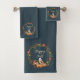 Fall owl and pumpkins with customisable text bath towel set
