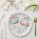 This pumpkins and bows charger plate is ideal for fall gender reveals, neutral baby showers, or toddlers' birthday parties. The cream, pink, and teal watercolors make this fall invitation a trendy and stylish option for your event. Handmade and unique. Check out our shop for colour variations.