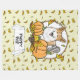 Fall Pembroke Welsh Corgi - Cute, smiling Corgi...surrounded by falling autumn leaves, pumpkins, pine cones, and happy squirrel friend holding an acorn. Copyright © Angi Laframboise. Funny seasonal dog breed cartoon gifts for dog lovers.