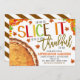 Fall Thanksgiving Slice It Thankful for you Pie invitation. These autumn invitations are customisable by you - all text is editable so you can make them read whatever you wish for your Thanksgiving and fall marketing needs! Works great for fall appreciation events!