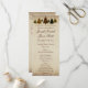 Fall Pine Trees Autumn Vertical Wedding Programs with a row of pine trees in various fall colours of shades of brown and green at the top of the wedding program. The program is a distressed light brown tan colour with brown lettering, perfect for a fall wedding. This is a 4" x 9" vertical two sided wedding program. Just use the template fields to add your own wedding ceremony details or use the "Customise It" button to add or delete lines of text or move things around.