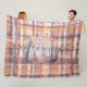 Fall plaid script pumpkin beige orange plum stripe fleece blanket