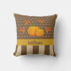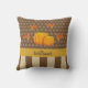 Warm your home this autumn with this custom last name throw pillow. Its modern design features stripes of brown and tan and a soft background of light brown polka dots. A pumpkin and fall leaves complete the look and are displayed elegantly above a gold stripe for your family name. This throw pillow is customisable and makes a great personalised fall gift for a housewarming, bridal shower, wedding, birthday, Thanksgiving, or other holiday!