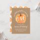 A stylishly sweet birthday invitation with an autumn theme and featuring our hand painted pumpkin. Reads "Our Little Pumpkin is turning one"
