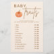 Perfect for a gender-neutral gathering or tailored to fit a baby boy or baby girl shower, this game brings together delightful orange and blue pumpkin themes. It's an engaging activity that merges the warmth of fall baby shower vibes with creative little pumpkin baby shower ideas, including boho elements. Ideal for adding a fun and festive touch to your event, this game is sure to be a hit among guests excited to guess and giggle over potential baby traits!