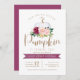 Fall florals and a sweet white pumpkin will make you love this sweet birthday invitation. "A Sweet Little Pumpkin Is Turning One" can be adapted for any age. Add your rsvp information at the bottom. Reverse side of card is burgundy to match banner on the front.