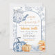 Fall Pumpkin Blue Chinoiserie Baby is Brewing Invitation