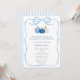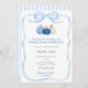 This "Something Blue" bridal shower invitation design is both elegant an on-trend, featuring a popular ribbon bow frame. This was hand painted by me in watercolors before being scanned into digital form. The reverse of the invitation is a simple blue and white seersucker striped backer. The pumpkins in white and two different shades of blue, give a nod to Fall.