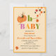 Fall Pumpkin Oh Baby Shower Invitations with beautiful whimsy orange pumpkin and falling autumn foliage and daisies in yellow and orange. Original and watercolor details painted by me! With fun and bright typography.