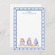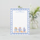 This chic note card features 3 different ginger jars with orange bows and pumpkins. The border around the card is a blue bamboo frame. You can personalise with your name.
