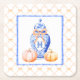 This chic design features a chinoiserie ginger jar with a blue monogram and an orange bow surrounded by pumpkins. There is an orange bamboo pattern in the background. You can personalise with your monogram.