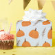 This modern pumpkin wrapping paper roll features pumpkins, whimsical fall leaf branch on blue background.