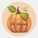 Great for the fall autumn season this pretty pumpkin is featured on this light orange personalised round sticker. Perfect for Halloween and Thanksgiving cards.