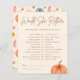 A delightful addition to any baby shower with a charming pumpkin theme. Perfect for a little pumpkin baby shower, this game fits seamlessly into fall baby shower celebrations. Its versatile design makes it ideal for gender-neutral gatherings, as well as specific baby boy or baby girl showers. Featuring both orange and blue pumpkin motifs, the game adds a playful and seasonal touch, appealing to those planning a boho pumpkin baby shower. This engaging activity is sure to entertain guests and enhance the festive atmosphere of your lil pumpkin baby shower.