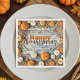 The centre displays "Happy Thanksgiving." Crucially, the napkin is fully customisable, allowing you to add a family name or personal message below the greeting. This makes it both a practical table accessory and a unique, memorable keepsake for your holiday celebration.