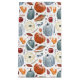 This design features a beautiful autumn-themed pattern with a focus on pumpkins and other fall harvest elements. The design includes various pumpkins in shades of orange, cream, and muted blue, each detailed with subtle watercolor textures. Complementing the pumpkins are elements like corn on the cob, autumn leaves in warm earthy tones, berries, and slices of pumpkin pie. The pattern is set against a crisp white background, allowing the rich colours and detailed illustrations to stand out. This design captures the essence of the fall season, evoking feelings of warmth, harvest, and festive celebration.