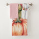 Lovely pumpkin and floral print, that has soft colours that include pinks, whites, and orange.