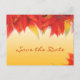 Fall wedding save the date postcards. Fall red maple leaves, floral graphic art.