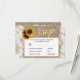 Fall rustic sunflower burlap wedding script rsvp card