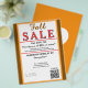 Fall sale. Jewelry or any business type supplies. Orange and brown background. Insert Sale price and date details. Upload Your Logo, or delete to leave area blank. Insert Name and Website, Social Media Handle, or other contact QR Code. Fall written in orange shadow script. Sale written in large red typography. Thank You is written inside large white heart on backside. Original Design by TamiraZDesigns.