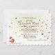 A delightful invitation featuring blowing autumn leaves and a little bird holding an orange umbrella. Want to save money? Print on the basic square corner paper.