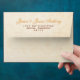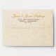 This envelope features faded, script writing of a love poem on the light cream outside. The inner lining is a vibrant orange and yellow damask design. On the back flap is a customisable return address, in classic script and serif fonts. The design is lightly distressed for a charmingly vintage look throughout.