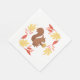 A happily giving squirrel holds a gifted nut from autumn's bountiful harvest. Leaves of lemon yellow, burnt sienna and coral adorn the scene.