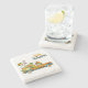 The coasters are gorgeous, a quality feel and heavy weight. They look like a precious archeological find. A rustic stone juxtaposed with a modern floral black and white print. I like the way the print goes slightly imperfect on the cut stone edges giving them a kind-of natural beauty.