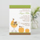 Adorable fall themed baby shower invites featuring little bear in a stroller and 2 pumpkins.