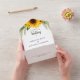 This all-in-one wedding invitation features a watercolor graphic of elegant sunflowers and greenery across the top. This all in one invitation features the invitation with a tear off portion for the RSVP to be used as a postcard. This design is perfect for summer and fall weddings.