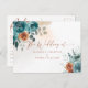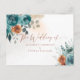 Fall Teal Burnt Orange Boho Romantic QR Code RSVP Postcard
