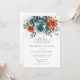 Fall Teal Burnt Orange Floral Romantic Wedding Invitation