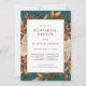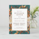 Fall Teal Rehearsal Dinner Invitation. Set the tone for a warm and welcoming evening with this beautifully designed rehearsal dinner invitation from the Teal Terracotta Fall Leaves Floral Collection. Featuring hand-painted watercolor artwork of burnt orange and terracotta leaves, cream and beige dahlias, and copper and rust-hued roses set against a deep teal background, this invitation evokes the essence of autumn elegance. The rich seasonal colours create a perfect blend of rustic charm and refined style, making it ideal for a cosy dinner gathering before the big day. Start personalising your invitation and give guests a preview of your unforgettable fall celebration.