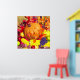 The sights, scents and tastes of autumn. 3d Thanksgiving image of a fall harvest scene including pumpkins, apples, oranges, corn on the cob and fall-coloured leaves and acorns.