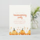 Welcome autumn with open arms and a new home celebration! This fall housewarming party invitation template features a charming row of pumpkins adorned with fall leaves at the bottom, symbolising warmth and new beginnings. Above, the party details are elegantly displayed, providing all the information your guests need to join in the cosy festivities. With its inviting design and seasonal flair, this invitation sets the perfect tone for a memorable gathering filled with autumnal cheer and homey comfort.