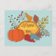 Fall-Themed Leaves Berries Pumpkin Thanksgiving Postcard