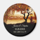 A romantic Save the Date magnet featuring a colourful autumn tree and festive lantern overlooking a lake.