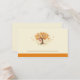 Modern and elegant place card, ideal for an autumn or fall event. Features a tree with leaves in solid colours and two hearts hanging from it to symbolise the bride and groom. A solid colour border on the bottom completes this pleasing design. Add your own wording.