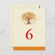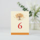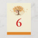 Modern and elegant table number card, ideal for an autumn or fall event. Features a tree with leaves in solid colours and two hearts hanging from it to symbolise the bride and groom. A solid colour border on the bottom completes this pleasing design. Add your own wording.