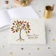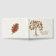 Autumn themed wedding guest book with graphics of a colourful Fall leaf tree, on a textured looking ivory background. Personalise the text, on the front, for your wedding day.