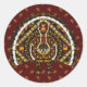 A turkey masks an elegant, Thanksgiving themed mandala, featuring Native American patterns and modern icons in shades of red, yellow, and orange for fall.