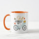 The "Fall Vibes" design is a charming and whimsical illustration that perfectly captures the essence of autumn. The central element of the design is a vintage-style bicycle rendered in a soft, pastel blue colour. The bicycle has a classic, retro look with curved handlebars and a basket attached to the front.