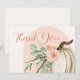 Show your gratitude in fall seasonal style with this Falling in Love with Baby thank you card. The soft blush pink arch atop a creamy ivory background adorned with a white watercolor pumpkin, eucalyptus leaves, blush roses, pampas grass, and pheasant feathers for a warm, rustic autumn feel. The terracotta orange “Thank You” text adds a refined touch, with space on back for your personalised message. Perfect for baby showers, fall celebrations, or seasonal gatherings, this card pairs beautifully with the matching invitations, décor, and favours in the Falling in Love with Baby collection for a perfectly coordinated event.