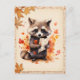Fall vibes postcard featuring a watercolor racoon holding a letter.