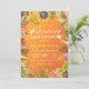 Wedding Celebration Invitation Card Templates - Elegant Autumn Maple Leaves, Pumpkins and Sunflowers Watercolor Flowers on Orange Gradient Background.