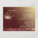 Cute, whimsical and sparkling dandelion flowers in the gold & brown evening field illustrated on custom Wedding Direction & Accommodation Enclosure Postcards. (The elegant wedding insert cards will perfectly fit in your 5"x7" or bigger size wedding invitation envelopes.) Lovely floral design amazing for your NOSTALGIC AUTUMN COUNTRY WEDDING | WHIMSICAL FALL OUTDOOR WEDDING | BROWN & GOLD COLOR PALETTE WEDDING or CHIC DANDELION THEMED WEDDING. ((You can find the matching wedding essentials & favours in this store, Bridal Heaven. Contact ujean4791@gmail.com for custom work and/or coordinating wedding stationery.))