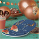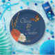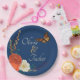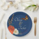 Adorn your reception bar with these gorgeous autumn wedding paper plates. A rich navy blue background sets off the coral roses, rust red anemones and ivory dahlias along with wheat stalks and grasses decorate the edge surrounding the happy couple names. A monarch butterfly floats above the elegant script. More Wedding day items available in this theme.